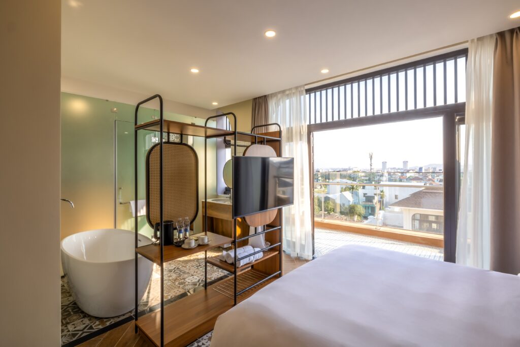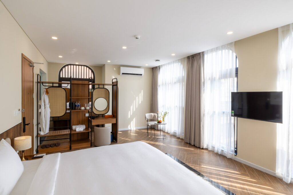 Tại Lumiere Boutique Vỹ Dạ, mỗi căn phòng là một khoảng lặng yên bình, nơi đường nét thiết kế truyền thống hòa cùng tiện nghi hiện đại.